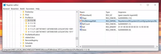 Je kunt achterhalen op welke gebruikersaccount de mappen in de lijst betrekking hebben door erop te klikken en te dubbelklikken op ProfileImagePath.