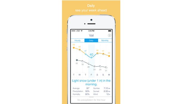 Weather Line is een app die je inzicht geeft in de weersverwachting per uur, dag en maand. In de eerste twee gevallen gaat het hierbij over de daadwerkelijke verwachting, terwijl je bij het overzicht per maand langlopende gemiddeldes kan bekijken. Net als bij veel andere apps krijg je de verwachting te zien aan de hand van temperaturen, luchtvochtigheid en windkracht. Weather Line onderscheidt zich echter door verwachtingen in een overzichtelijke grafiek te plaatsen. Hierdoor zie je per uur of dag hoe het weer zich zal ontwikkelen. Erg handig voor wanneer je bijvoorbeeld de warmste dag in de week wil uitzoeken voor een leuk dagje weg.