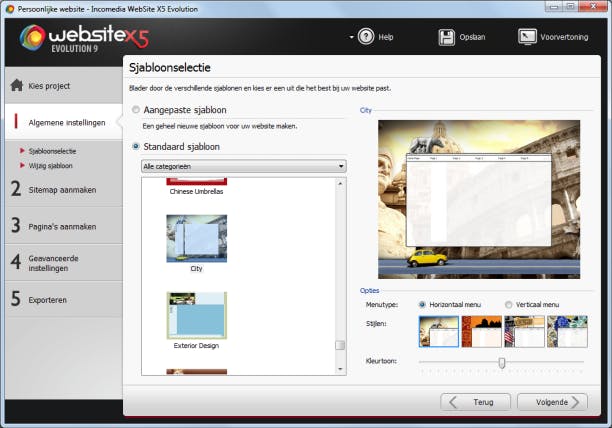 , dat kan u heel wat vragen en zoekwerk besparen. Vervolgens kunt u onmiddellijk aan de slag. Kies een ontwerp uit ruim 1500 sjablonen, bepaal het aantal pagina's en de structuur in de sitemap, maak de verschillende pagina's op, stel de geavanceerde opties in en u bent klaar om de website te exporteren naar het web. U kunt tijdens het ontwerpen telkens terug naar de vorige stap om uw website helemaal naar uw hand te zetten.