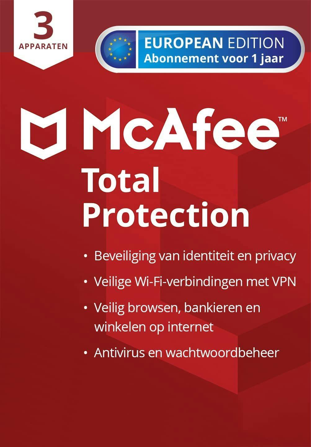 Begin het nieuwe jaar goed en beveilig voor weinig geld al je apparaten. McAfee Total Protection 2022 is op Amazon namelijk hevig afgeprijsd. Beveilig drie apparaten voor 12,95 euro of vijf apparaten voor 14,95 euro. Heb je een licentie voor nóg meer apparaten nodig, dan betaal je 17,95 euro voor de bescherming van tien apparaten. Het programma is geschikt voor Windows, macOS, iOS en Android. Naast afweergeschut voor malware bevat McAfee Total Protection allerlei extra functies. Sla bijvoorbeeld wachtwoorden in een veilige omgeving op en vernietig definitief bestanden. Verder kun je ook via een beveiligde VPN-verbinding surfen. Voor laatstgenoemde functie geldt er wel een maandelijkse datalimiet van 250 MB. Wil je vaker via VPN surfen, dan rekent McAfee hiervoor extra kosten.