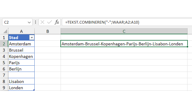 De formule TEKST.COMBINEREN