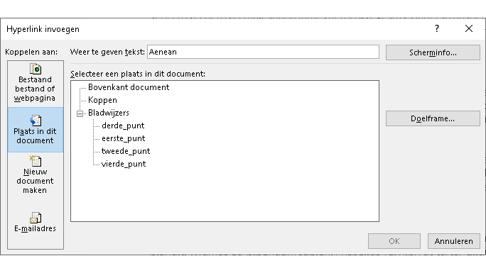 - Bladwijzers binnen document maken