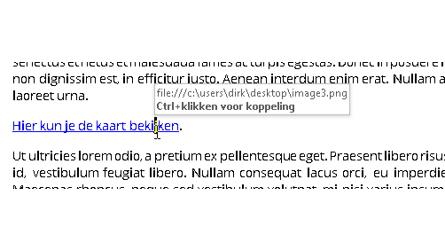 Selecteer de tekst waar je de hyperlink wilt plaatsen en gebruik de sneltoets Ctrl+K. Navigeer in het Adres-vak naar de map waarin de afbeelding wordt bewaard, of plak hier het internetadres van een webafbeelding. Bevestig met OK.