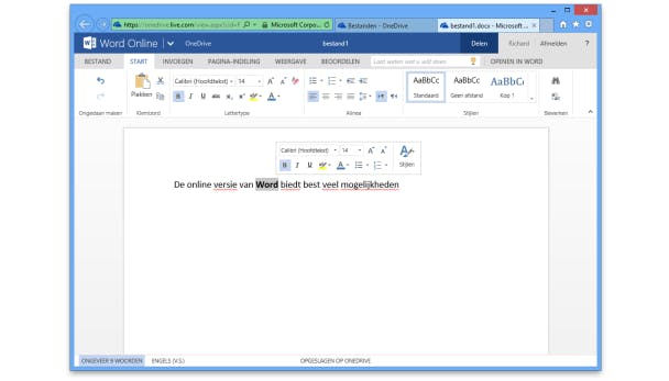 Ook OneDrive biedt je de mogelijkheid om met meerdere mensen tegelijkertijd aan een document te werken. Je kunt kiezen om een bestand te openen in Word Online, een uitgeklede versie van Word. Toch voelt de online-variant beslist niet karig, alle belangrijke functies vind je er terug. Wil je meer opties, dan kun je het bestand openen in de offline versie van Word door bovenin op Openen in Word te klikken. Na het bewerken, kun je vanuit Word het bestand weer op je OneDrive opslaan. Gebruikt je hele team overigens de iWork-suite van Apple, dan is iCloud een handige optie.