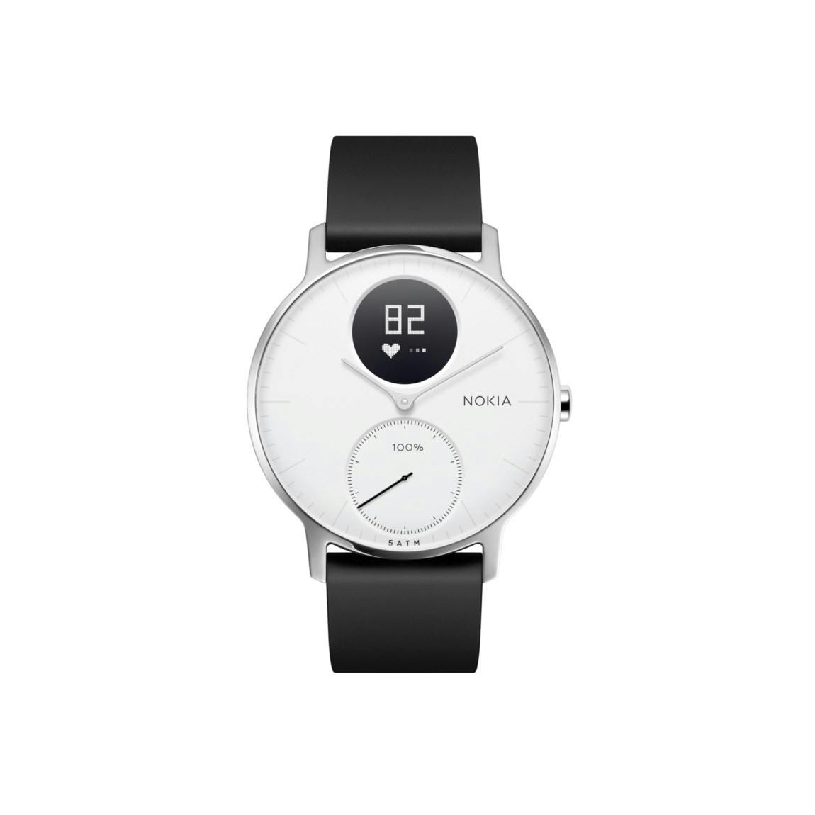 De Nokia Steel HR ziet er adembenemend uit en is een typisch voorbeeld van een product dat eigenlijk in geen van de categorieën helemaal thuishoort. Het is niet een echt sporthorloge aangezien de sportprogramma’s daarvoor te basic zijn. Het heeft een klassiek horloge-scherm met een klein lcd-display waarop je simpele fitness-informatie kunt zien. We hebben hem toch bij de smartwatches gezet omdat het horloge wel notificaties van je smartphone kan ontvangen, van bijvoorbeeld WhatsApp, Uber en HealthMate.