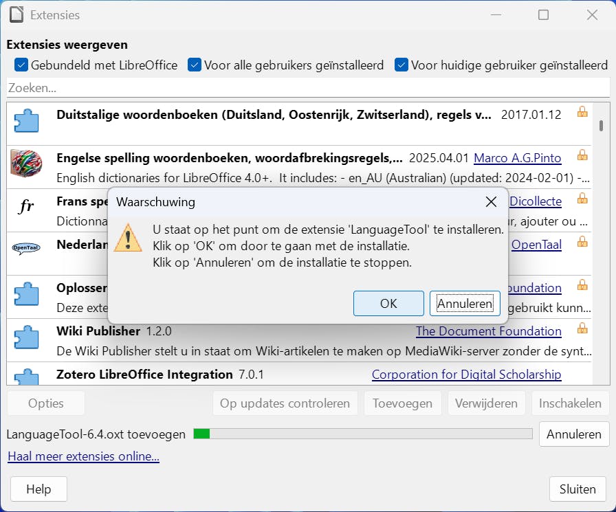 LibreOffice bevat al heel wat functies, maar via een ecosysteem van extensies breid je de functionaliteit op verschillende manieren uit. Je vindt een overzicht op https://extensions.libreoffice.org. Enkele populaire extensies zijn LanguageTool voor uitgebreidere grammatica- en stijlcontrole (ook voor Nederlands), MultiSave om documenten tegelijk in meerdere formaten te bewaren, AltSearch voor krachtiger zoeken, Zotero als referentiemanager voor studenten en Code Highlighter 2 voor syntax highlighting van coderegels.