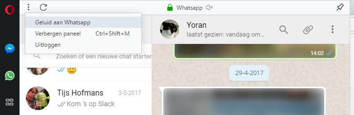 Wil je WhatsApp dan wel Facebook Messenger toch even kort uit beeld hebben, dan is daar een handige sneltoets voor: Ctrl + Shift + M. Druk je weer op die toetsencombinatie, dan komen de vensters weer tevoorschijn.