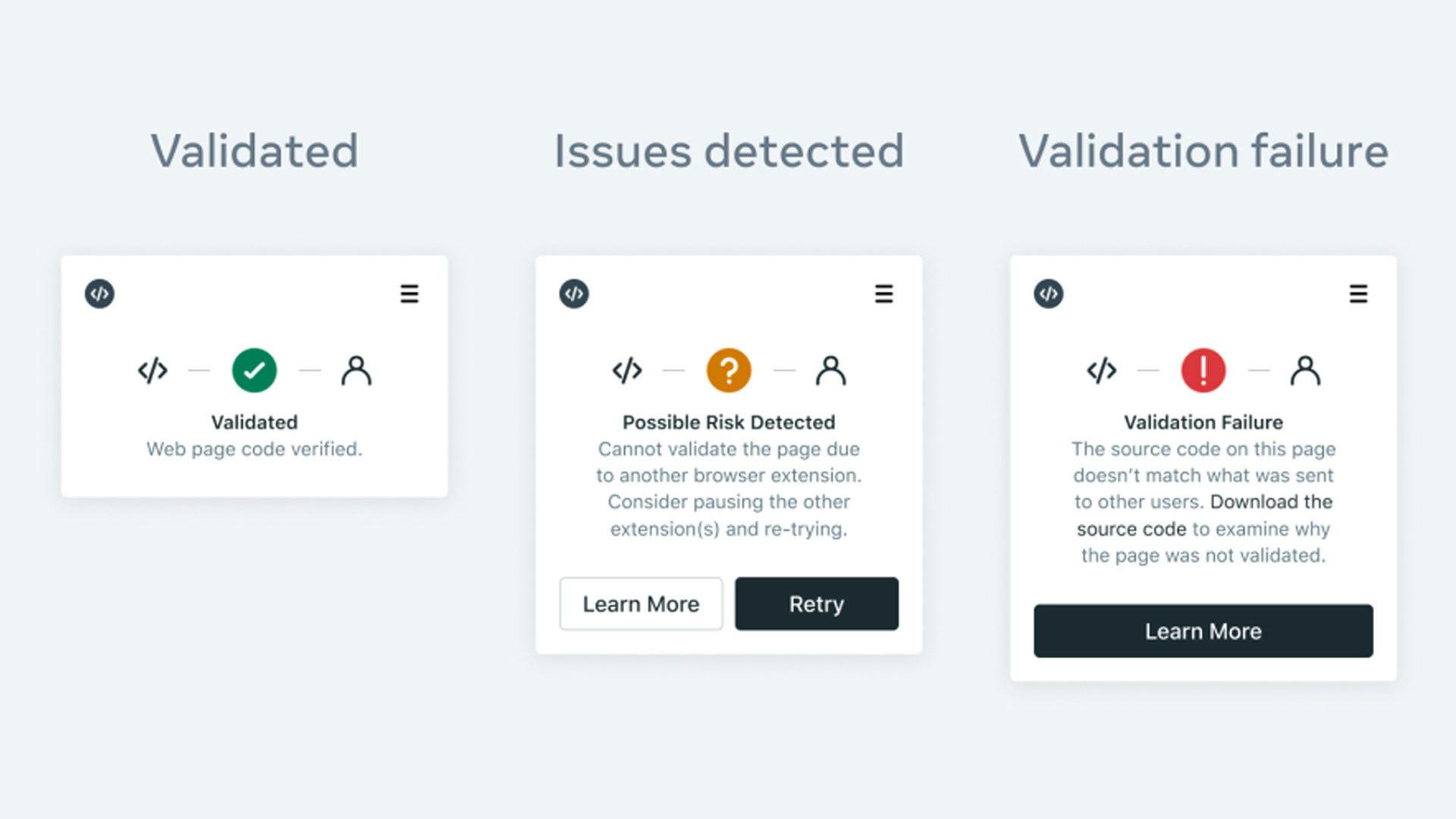 Code Verify is een extra beveiligingslaag die gebruikmaakt van de subresource integrity van een browser. Dat onderdeel controleert of de middelen die een browser binnenhaalt niet op wat voor manier dan ook aangepast en dus veilig voor gebruik zijn. Dat geldt normaliter voor enkele bestanden van een webpagina, maar Code Verify controleert dit voor een complete pagina.