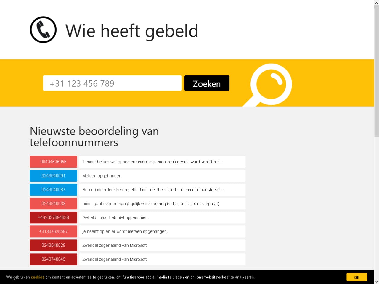 Wie Heeft Gebeld? - Register van nummers van zwendelaars
