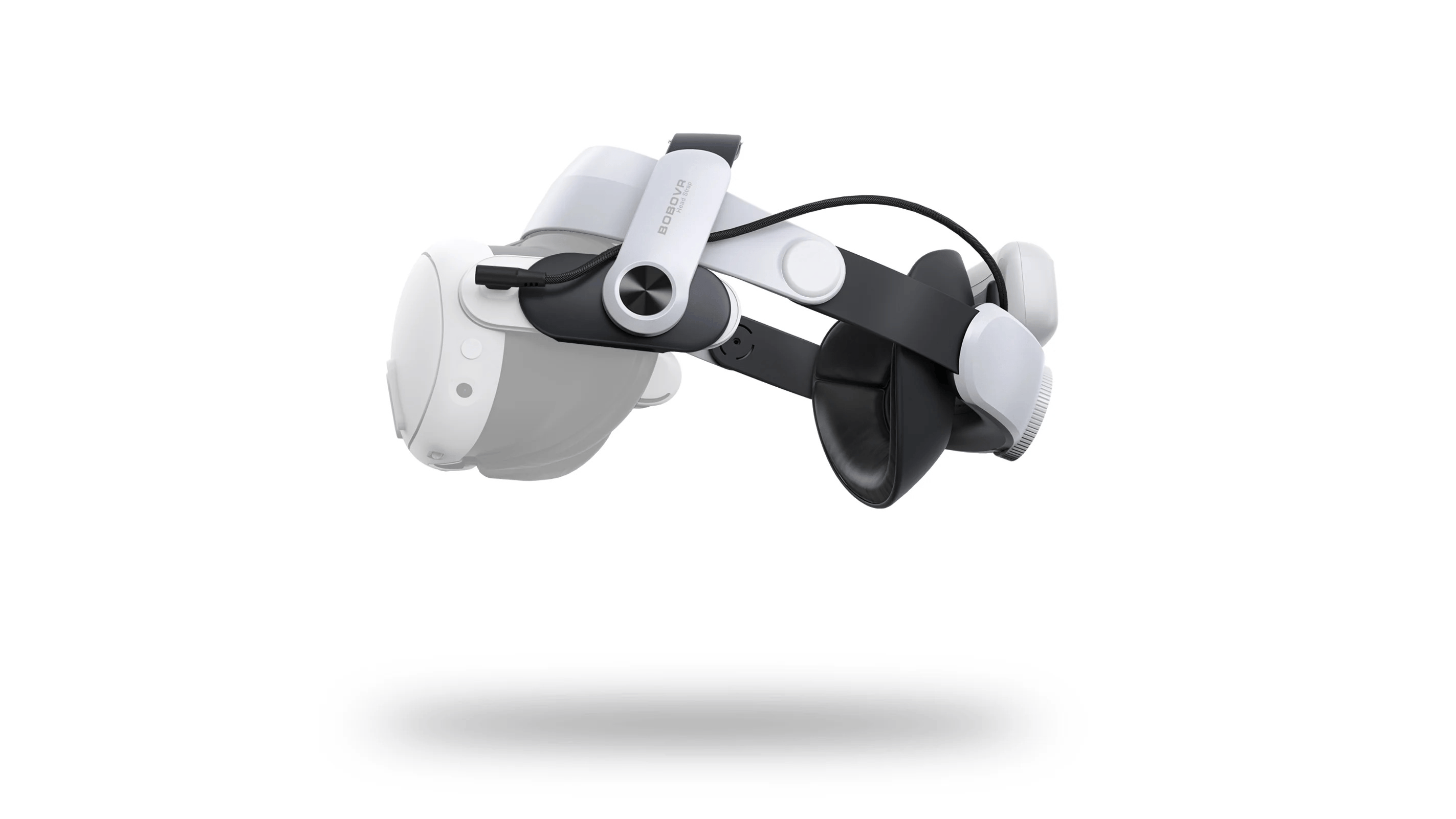 Gelukkig zijn er meerdere manieren waarop je dit probleem kunt oplossen. Onze favoriet is een alternatieve hoofdband van BoboVR, genaamd de M3 Pro. Deze speelt leentjebuur bij de VR-bril die Sony ooit voor de PlayStation maakte. De band gebruikt een zogeheten halo-ontwerp. Hij zit op je voor- en achterhoofd als een pet, hoed of strakke zweetband, terwijl de bril voor je ogen bungelt. Dat voelt vele malen comfortabel. Voordeel: de M3 Pro heeft ook een batterij achterop, zodat je de accuduur van de Quest 3 verdubbelt.