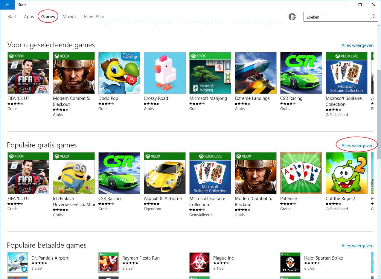 Hierbuiten zijn er nog veel meer gratis (en betaalde) spellen te vinden. Ga daarvoor naar de App Store in het startmenu en kies bovenin voor Games. Scroll een stukje omlaag en kies voor Alles weergeven naast Populaire gratis games. In de balk aan de linkerzijde van het scherm zijn de games nog te filteren op genre, zoals racen, kaartspellen en strategiespellen.