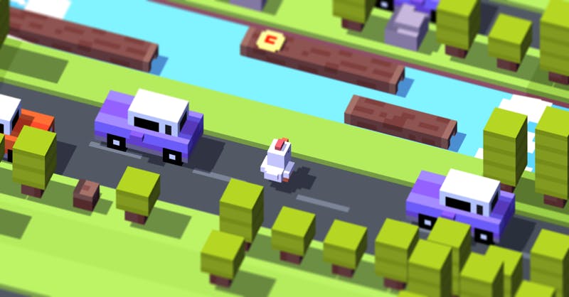Crossy Road is duidelijk geïnspireerd door Frogger. Help een kip de weg over te steken, en nog een weg, en een sloot... hoe verder je komt, hoe meer muntjes je krijgt om nieuwe figuurtjes van te kopen. Ook zo'n spelletje voor 'even tussendoor', met een eigenwijze grafische stijl.