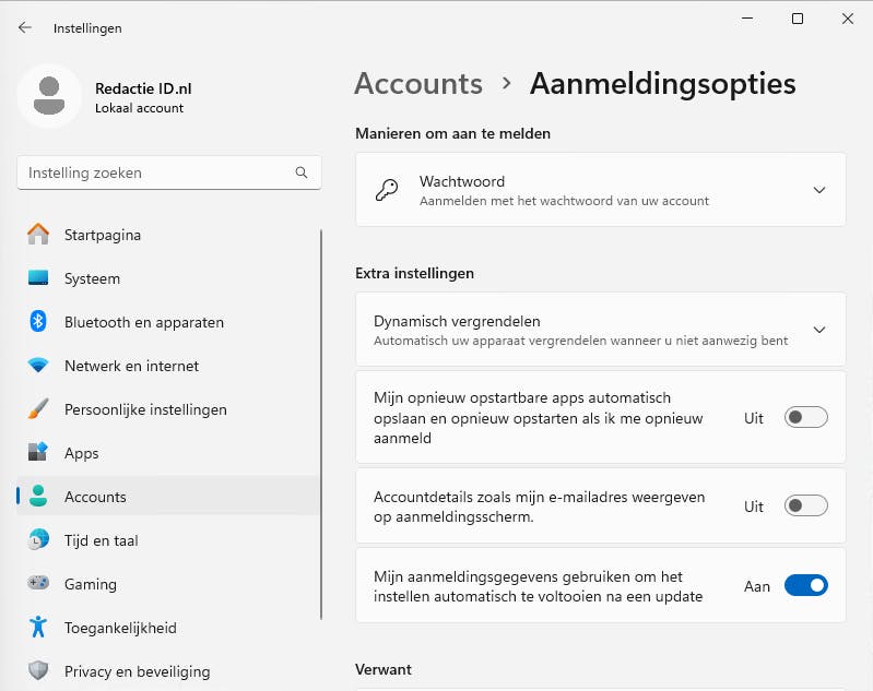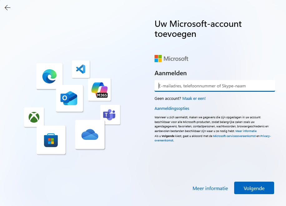 Microsoft wil maar al te graag dat je een Microsoft-account hebt en deze ook gebruikt bij het aanmelden van Windows 11. Behalve dat je hiermee in geval van het vergeten van je installatiecode het besturingssysteem makkelijker opnieuw kunt activeren, biedt een Microsoft-account niet heel veel extra voordelen in Windows 11 zelf. Het enige wat met zo'n account makkelijker gaat is het instellen van e-mail en OneDrive, maar dat zijn ook diensten waar je je later bij kunt aanmelden.