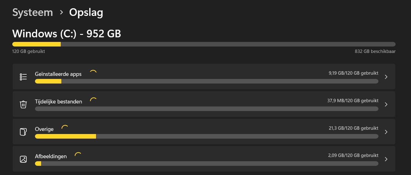 - Bekijk hoeveel ruimte er in gebruik is