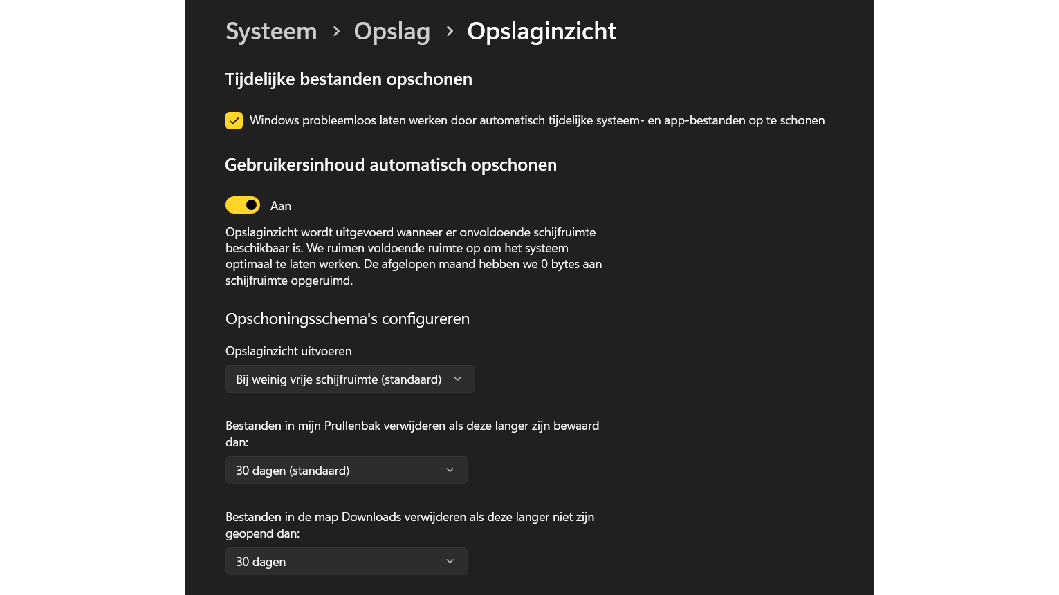 Met Opslaginzicht zal Windows automatisch overtollige bestanden opschonen.