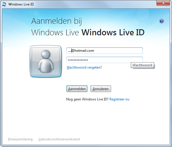 Zorg dat u bent aangemeld met het gebruikersaccount waaraan u het Windows Live ID wilt koppelen. Open vanuit het configuratiescherm weer het beheer voor Gebruikersaccounts. Kies voor Online-id's koppelen (links in het venster) en klik nogmaals op Online id-koppelen. Geef uw Windows Live ID op. Dit kan uw Hotmail-adres zijn. Hebt u nog geen Windows Live ID, maak er dan een aan via Live.com. Klik op Aanmelden. Het ID wordt gekoppeld aan het gebruikersaccount. Voortaan kunnen andere gebruikers uw Windows Live ID opgeven bij het delen voor specifieke personen.