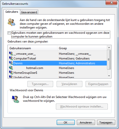 Windows 7 gebruikersaccounts