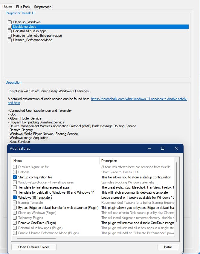 De plug-ins vind je dan terug in de gelijknamige rubriek, gelukkig wel inclusief feedback. De talrijke registertweaks, bereikbaar via een link op het tabblad Plus Pack, kregen we helaas niet in de app geïntegreerd.
