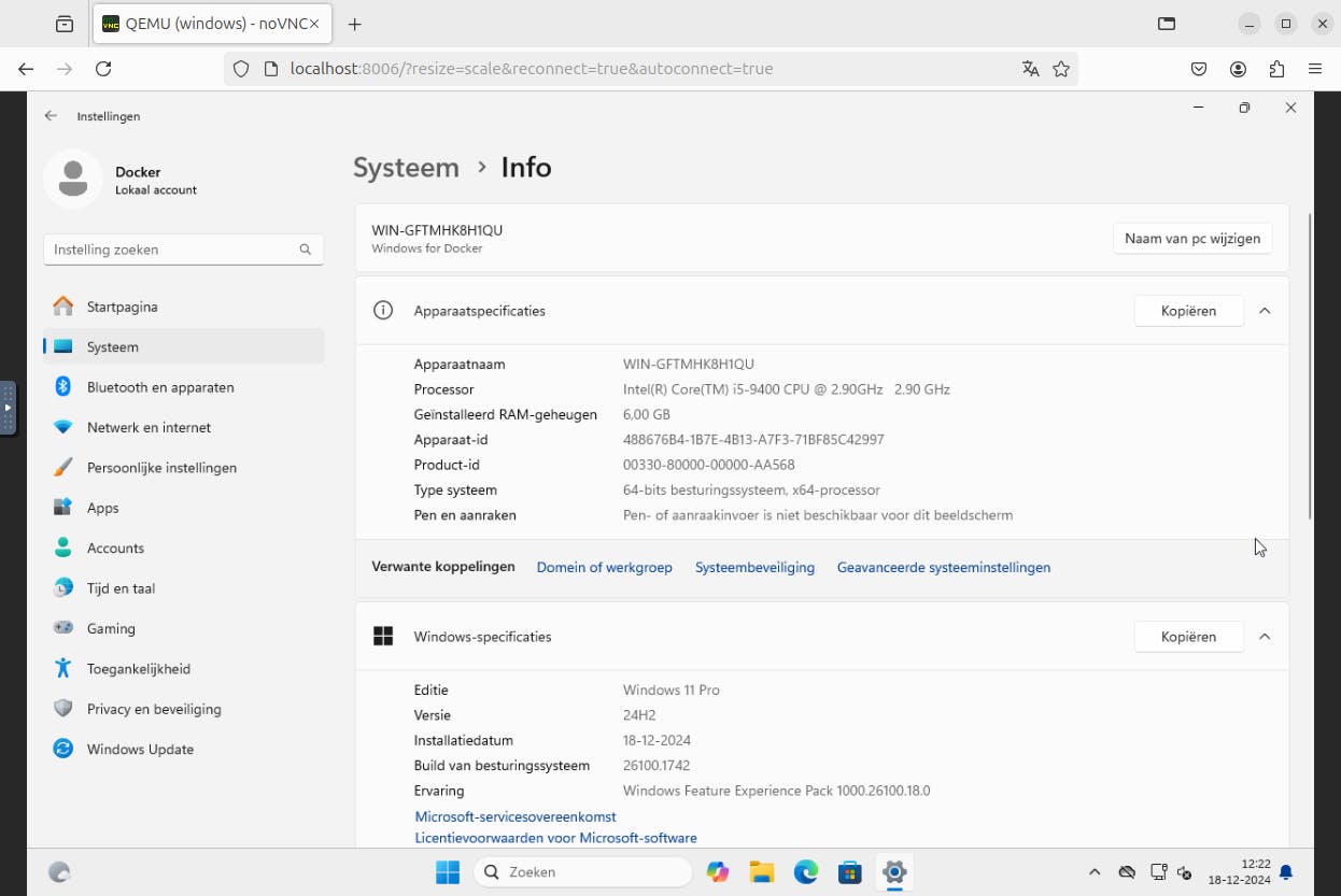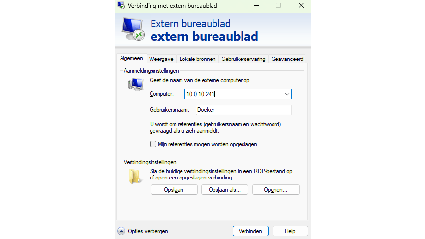 Daarna kun je alleen nog vanaf het systeem waarop deze Docker-container met Windows draait verbinding maken. Dit geldt bij deze aanpassingen zowel voor het verbinden met een browser als met een RDP-client.