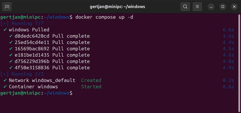De container krijgt simpelweg de naam windows en biedt netwerkfunctionaliteit, inclusief ondersteuning voor VPN/tunneling en externe toegang via RDP (Remote Desktop Protocol).