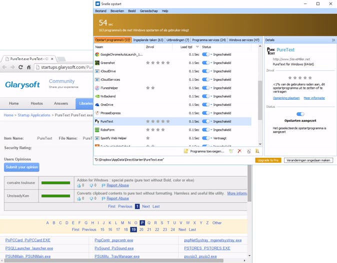 Het is af te raden om lukraak onderdelen uit te schakelen. Gelukkig geeft Quick Startup goede handvatten om erachter te komen wat je veilig kunt uitschakelen en je kunt je aanpassingen ook weer snel ongedaan maken. Beginners kunnen zich beter beperken tot het tabblad Opstart programma's en de overige tabbladen negeren.