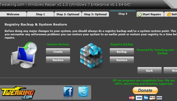 Windows Repair dringt er sterk op aan eerst enkele voorzorgsmaatregelen te nemen.