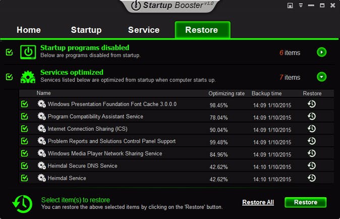 Herstart je computer en controleer of je profijt trekt uit de optimalisatie van je opstartproces. Een fout kun je eenvoudig herstellen via het tabblad Restore. Geef aan welke wijzigingen je wilt terugzetten en bevestig dit met Restore.