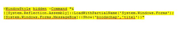 Met behulp van Powershell is het alsnog mogelijk een pop-upbericht te doen opduiken. Kies Een programma starten en vul powershell in bij Programma/script. In het veld Parameters toevoegen vul je het volgende commando in: