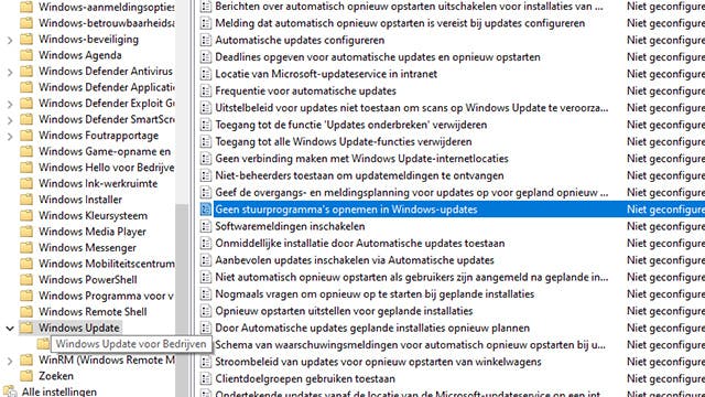 In Windows Pro en hoger kun je via de Editor voor lokaal groepsbeleid naast de bovenvermelde uitstelopties nog heel wat andere aspecten van het updateproces bijsturen. Druk op Windows-toets+R en voer gpedit.msc uit. Open achtereenvolgens Computerconfiguratie / Beheersjablonen / Windows-onderdelen / Windows Update. Hier staan meer dan dertig instelbare opties die allemaal met Windows-updates te maken hebben. Wanneer je dubbelklikt op zo’n item krijg je uitgebreide informatie, en kun je het desgewenst inschakelen en verder configureren. Een voorbeeld: schakel je Geen stuurprogramma’s opnemen in Windows-updates in, dan zal Windows geen drivers opnemen in de Windows-kwaliteitsupdates.