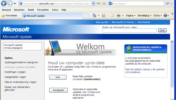 Om er zeker van te zijn dat je alle updates hebt, is het aan te raden om voor 8 april een handmatig controle te doen en updates te installeren. Ga naar Start / Configuratiescherm / Windows Update en laat je systeem onderzoeken. Kies voor Snel om alleen de meest essentiële updates binnen te halen.