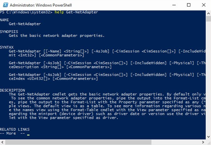 De helpfunctie van PowerShell is zeer uitgebreid en zelfs onoverzichtelijk als je alleen de opdracht help geeft gevolgd door Enter. De functie wordt duidelijker als je de hulpvraag specificeert. Met de opdracht help Get-NetAdapter krijg je uitgebreide informatie over Get-NetAdapter. Je leest waar dit commando voor dient, hoe je het gebruikt en waar je meer informatie vindt als je 'alles' over het commando te weten wilt komen. Bij Related links zie je gerelateerde opdrachten. Zo komen we hier het commando Restart-NetAdapter tegen. Dit blijkt uitermate handig om via een PowerShell-commando de wifi-adapter snel uit te schakelen en weer opnieuw te activeren, een truc die meestal zeer effectief is om tijdelijke wifi-storingen op te lossen.