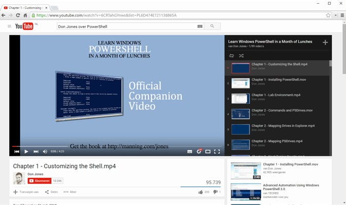 Het voert te ver om alles over PowerShell te weten te komen in één artikel. De beste manier om met PowerShell te leren werken, is door eraan te denken op een moment dat je voor een probleem staat of iets wilt automatiseren met een script. Probeer je uitdaging op te lossen met PowerShell, dan raak je snel gewend aan de manier van denken (en werken). Wil je een vliegende start maken? Dan kun je terecht bij Microsoft Virtual Academy voor uitgebreide video's. Ook op YouTube zijn veel filmpjes te vinden. De