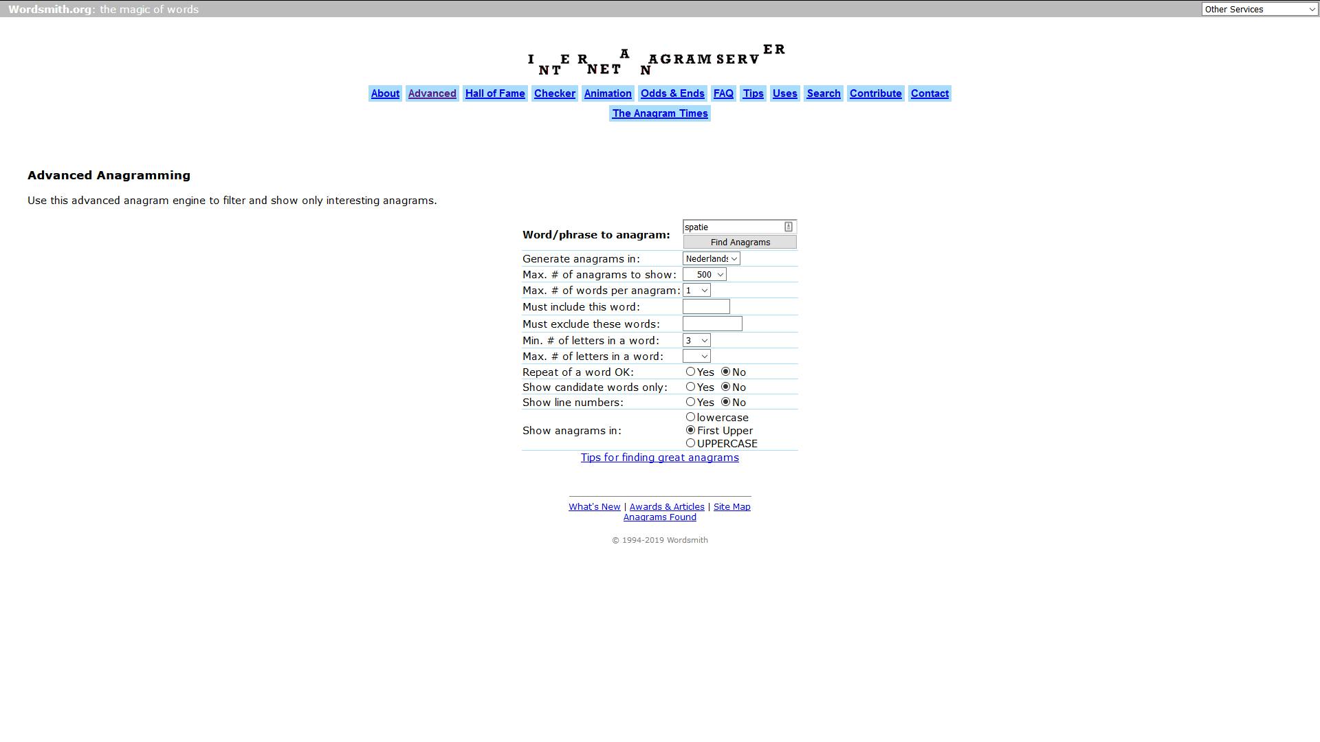 Vanaf het moment dat we voor het eerst ‘mama’ kunnen zeggen, trainen we ons brein om letters aan elkaar te smeden tot woorden en woorden tot zinnen. Die smederij in ons hoofd heeft door de eeuwen heen een gigantische woordenschat opgeleverd. Wie geïnteresseerd is in woorden kan zich uitleven op wordsmith.org. Deze site biedt dagelijks uitleg over een Engels woord (en een archief daarvan), een pangram-zoeker (alle letters in één zin), fantastische anagrammen in nieuwsberichten en een anagrammenzoeker die ook voor het Nederlands gebruikt kan worden (handig voor Words of Wonders hierboven).