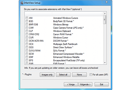 Allereerst brengt u een bezoekje aan de website IrfanView om de software te downloaden. Onder het menuonderdeel Download hebt u de mogelijkheid om het installatiebestand van 1,32 MB vanaf meerdere bestandslocaties binnen te halen. Kies een locatie uit en doorloop de installatiewizard. U bepaalt onder andere of u een snelkoppeling op het bureaublad wilt plaatsen en of u bepaalde bestanden met IrfanView wilt associëren. Dat is handig wanneer u bepaalde afbeeldingsformaten automatisch met deze fotoviewer wilt openen, zodra u erop dubbelklikt.