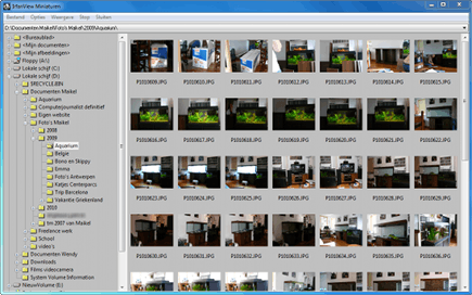 In het hoofdvenster van IrfanView bekijkt u gemakkelijk foto's of andere afbeeldingen. U sleept het bestand simpelweg naar het programma, en het wordt meteen weergegeven. Via de pijltjesknoppen zijn de overige foto's in de map bereikbaar. In- en uitzoomen gaat via de knoppen met het vergrootglas. Als u meerdere foto's tegelijk wilt bekijken, dan gaat u naar Start / Alle programma's / IrfanView / IrfanView - Thumbnails. Zoek met behulp van de mappenstructuur de juiste bestanden op in het hulpprogramma. Zodra u dubbelklikt op een afbeelding, opent de fotoviewer van IrfanView.