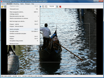 Bij foto's waarop alleen het onderwerp belangrijk is, maakt u eenvoudig een uitsnede. Op die manier wordt u bijvoorbeeld niet afgeleid door een hinderlijke achtergrond en bovendien is het een efficiënte manier om een afbeelding kleiner te maken. Eerst maakt u met de cursor een selectie door een vierkant te plaatsen rond het betreffende onderwerp. Vervolgens gaat u naar Bewerken / Selectie uitsnijden. De foto wordt direct aangepast. Navigeer naar Bestand / Opslaan als om de bewerking te bewaren. Let op dat u hierbij de juiste locatie en een geschikt bestandsformaat kiest.