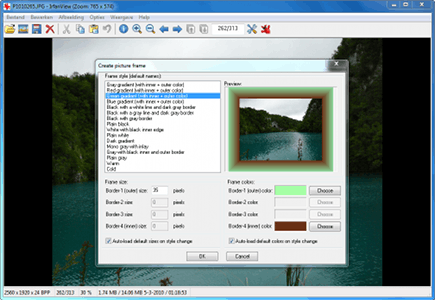 Voor een leuk effect voorziet u de kiekjes van een aantrekkelijke rand of lijst. Zoek een geschikte foto op en navigeer naar Afbeelding / Rand/Lijst toevoegen. De verschillende opties worden vervolgens in een lijstje weergegeven. Bij Frame colors selecteert u één of meerdere kleuren. U bepaalt de dikte door bij de optie Frame size de waarde voor het aantal pixels te wijzigen. In het Preview-venster ziet u direct wat voor effect de rand heeft. Bevestig met de knop OK om de rand aan de foto toe te voegen. Vergeet overigens het bestand niet op te slaan als u de bewerking wilt behouden.