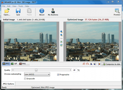 Als u alle extensies voor IrfanView uit stap 21 hebt geïnstalleerd, dan slaat u afbeeldingen gemakkelijk aangepast op zodat ze geschikt zijn voor internet. Dat is nuttig indien u wilt dat afbeeldingen op uw website snel worden geladen. U opent het juiste onderdeel via Bestand / Opslaan voor het Web. Bij plaatjes met een hoge resolutie, geeft de software eerst de gelegenheid om de afmetingen te verkleinen. Vervolgens maakt u in een nieuw dialoogvenster de keuze tussen jpg, gif of png en stelt u de kwaliteit in. U ziet direct wat voor effect de wijzigingen hebben, waarbij u meteen controleert hoe groot het bestand wordt. U slaat met Save de bewerkte afbeelding op.