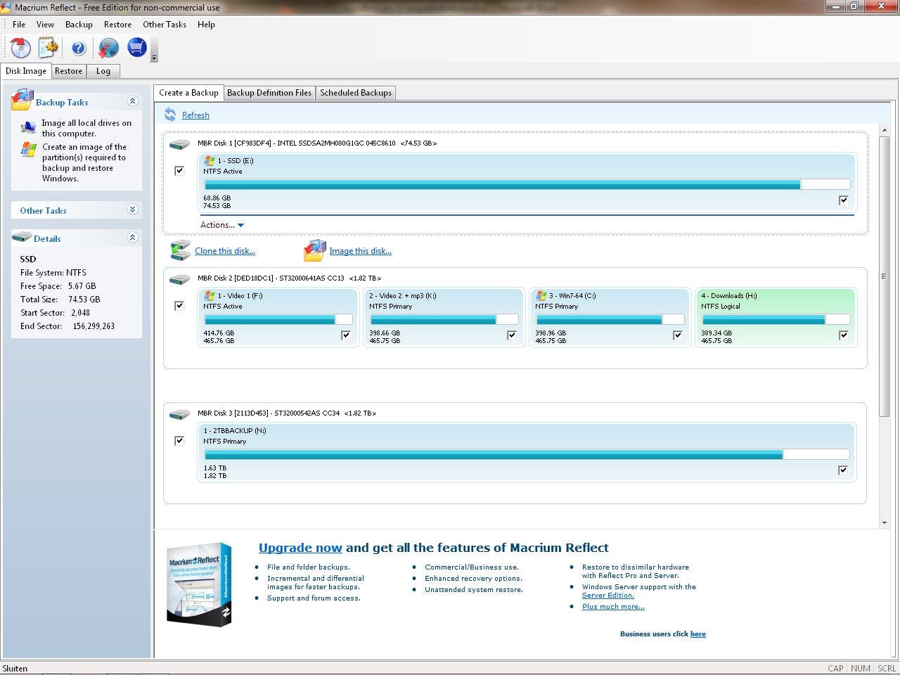 Wat uw voorkeur heeft hangt van uw situatie af. Het gratis imaging-programma Macrium Reflect biedt zowel clones als images. De betaalde versie biedt daarnaast backups op bestandsniveau en nog een aantal leuke opties zoals encryptie maar voor het veilig stellen van uw kostbare gegevens biedt de onbetaalde versie ruimschoots voldoende.