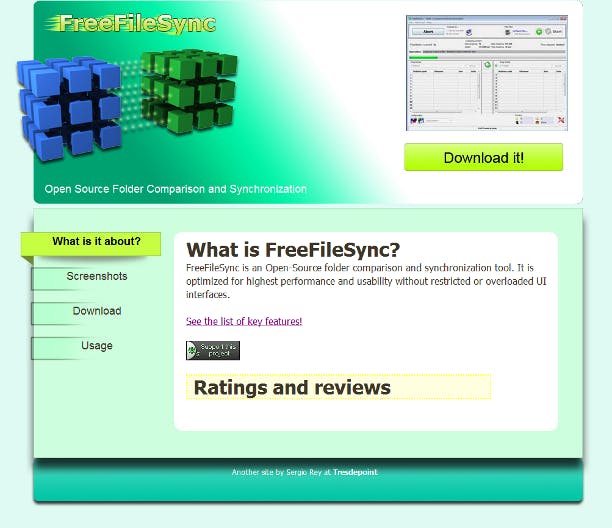 Met het gratis programma FreeFileSync kunt u mappen en zelfs complete schijven synchroon houden. U downloadt het via FreeFileSync. Daar aangekomen klikt u op de knop Download it! en vervolgens achter Looking for the latest version? op Download FreeFileSync vX.X Setup. U krijgt dan de meest recente versie die er is. In ons geval is dat v5.0. Omdat u dit programma waarschijnlijk vaker nodig zult hebben, is het verstandig het niet rechtstreeks uit te voeren, maar eerst op uw pc op te slaan.
