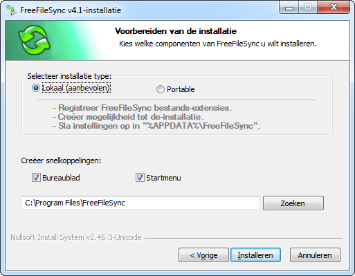 2. FreeFileSync installeren