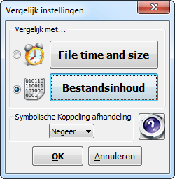 Klik op Synchroniseer en daarna op Start om de synchronisatie echt uit te voeren. Tijdens het proces ziet u de voortgang en na afloop verschijnt een samenvatting. Het vergelijken van bestanden gebeurt standaard door te kijken naar de bestandsgrootte en de aanmaak- of wijzigingsdatum. Theoretisch zouden bestanden dan inhoudelijk kunnen verschillen. Wilt u absoluut zeker weten dat bestanden identiek zijn, klik dan op het blauwe tandwiel en kies voor Bestandsinhoud. Bestanden worden dan karakter voor karakter met elkaar vergeleken. Dit kost wel wat meer tijd.