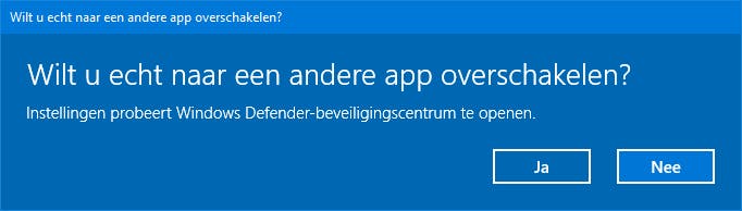 Er wordt de vraag gesteld of er een nieuwe app geopend mag worden. Nieuwe Start is namelijk onderdeel van het Defender Beveiligingscentrum, en het onderdeel wordt daar dan in geopend. Bevestig de vraag met Ja.