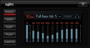 Behalve het regelen van het volume kunt u nog veel meer doen met het geluid. Uiteraard is er een ingebouwde equalizer die u vindt via de knop Control Panel onderin of via F7. Via Shift+E zet u hem aan of uit. Potplayer kent overigens zeer veel van dit soort sneltoetsen. Het is even studeren maar zeer de moeite waard!