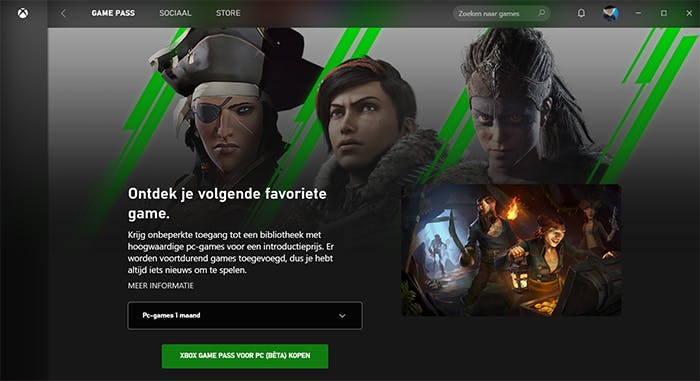 Voor het spelen van de Game Pass-games heb je de vernieuwe Xbox-app nodig. Download die via deze link uit de Microsoft Store. Het programma wordt automatisch geïnstalleerd en is onder andere terug te vinden in het startmenu van Windows 10.