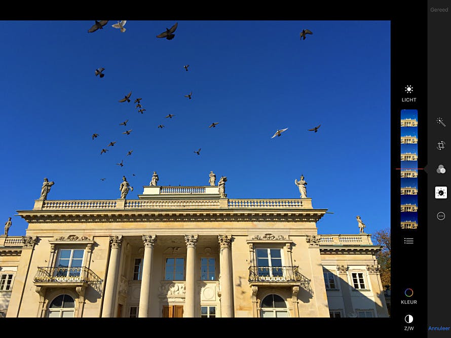 Op deze fotoselectie kun je nu je bewerkingen uitvoeren. Deze ‘acties’ zijn weliswaar opgedeeld in rubrieken (Afbeelding, Aanpassen, Filter en Diversen), maar deze namen zijn zo vaag dat het – vooral in het begin – een kwestie is van alle rubrieken even openen en zoeken naar de gewenste acties. Er is genoeg mogelijk, we telden zo’n tachtig acties, waaronder Kleurdiepte aanpassen, Gammaverzadiging, Sepia, Ruis onderdrukken en Olieverf schilderij.