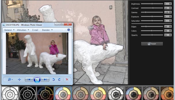 Met één muisklik maak je een schets, pentekening of olieverfschilderij van je foto's.