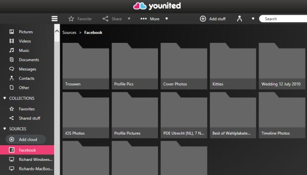Younited werkt goed samen met andere opslagdiensten, zo kun je bijvoorbeeld je Facebook of Picasa-account toevoegen via Add cloud. Al je foto's verschijnen automatisch in Younited. Je gegevens zijn veilig bij Younited, het bedrijf achter de dienst is het Finse F-Secure, maker van diverse virusscanners en antimalware-programma's. Het is tevens één van de weinige niet-Amerikaanse spelers op de markt van cloudopslagdiensten, wellicht is de dienst daardoor veiliger voor NSA-spionagepraktijken.