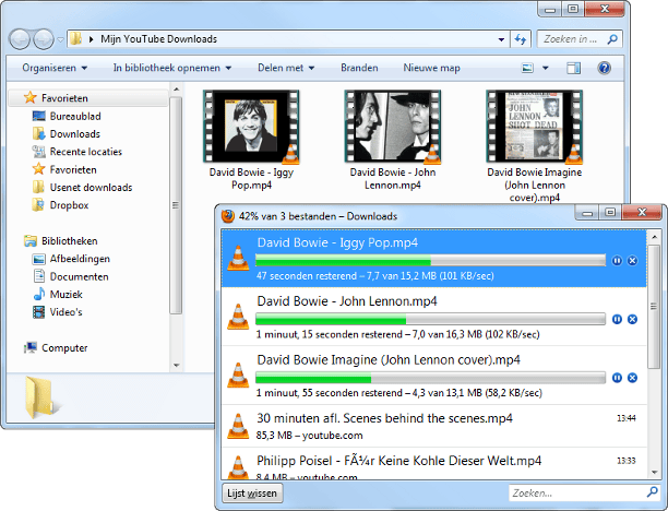 Het downloaden van de filmpjes kan enige tijd in beslag nemen. BYTubeD bewaart het eindresultaat als losse mp4-bestanden in de opgegeven map ('Mijn YouTube downloads' op uw bureaublad). De filmpjes zijn eenvoudig te herkennen omdat BYTubeD voor de bestandsnaam de YouTube-titel overneemt.