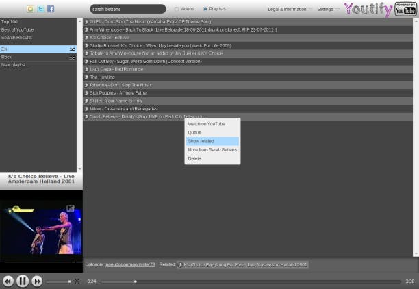 Het grootste nadeel van Youtify is dat ook concertopnames en andere clips met lage kwaliteit in de zoekresultaten worden opgenomen. De grootste troef is dat u helemaal geen account hoeft aan te maken. De volgende keer dat u Youtify in de browser start, krijgt u uw eigen afspeellijst opnieuw te zien. Al is dat ook een nadeel indien u Youtify op meerdere computers wilt gebruiken...